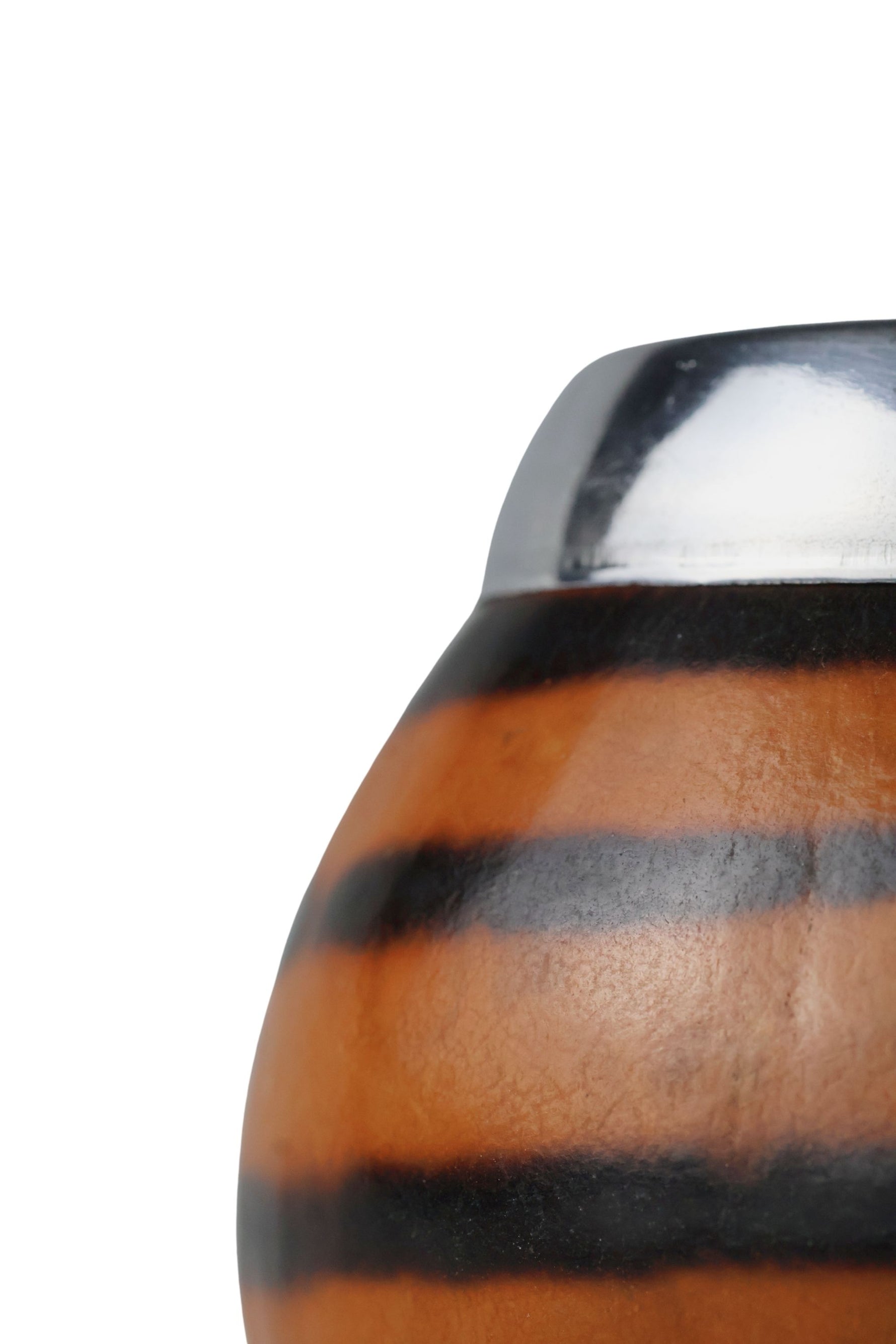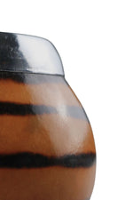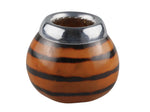 This traditional gourd is handmade from a dried and hollowed out pumpkin. It is approximately 13 cm high and 13 cm wide, with a 5 cm opening.